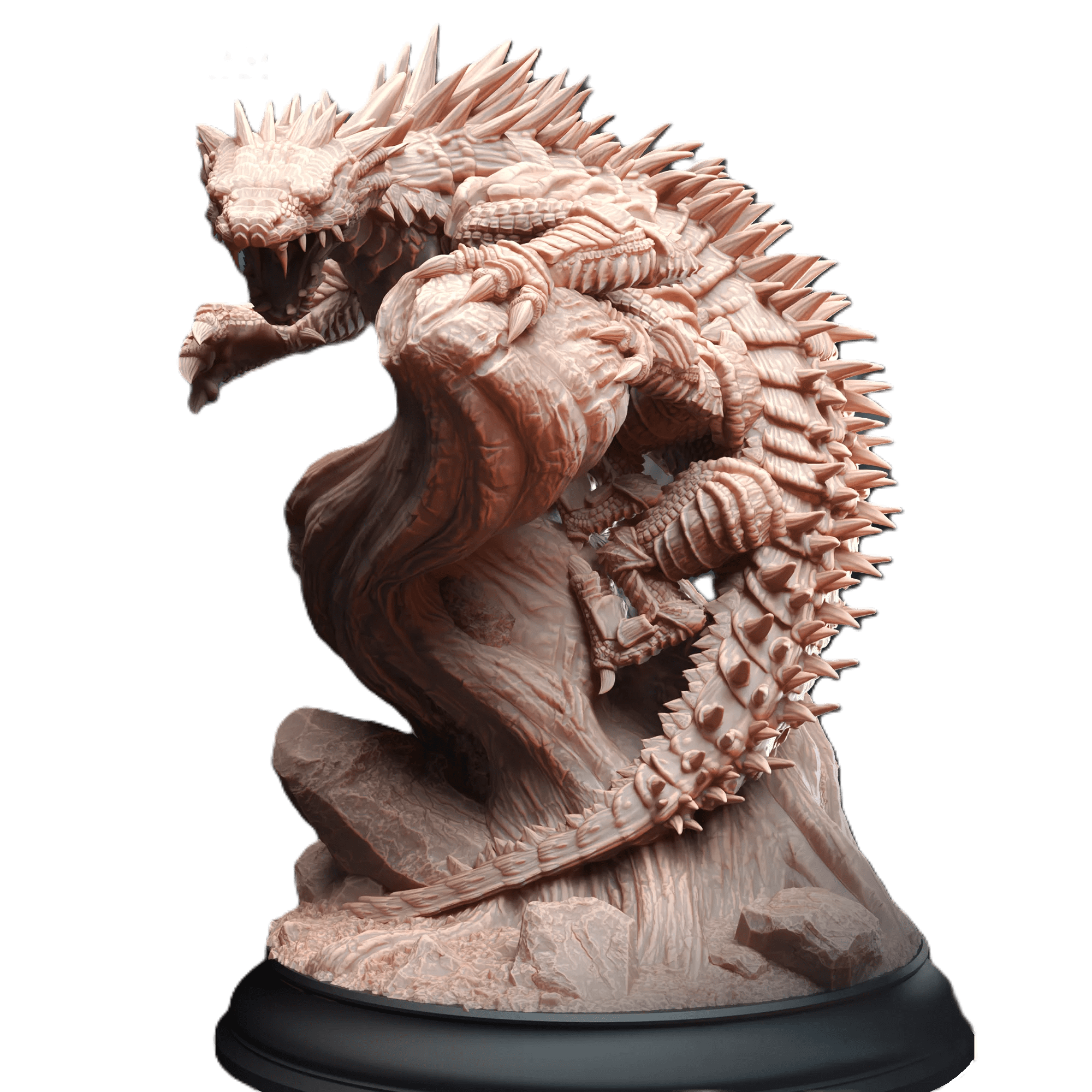 Display the untamed wild to your tabletop with the Verdant Lurker miniature. This striking model features a powerful, crocodile-like creature with a heavily armored, spiky back and a terrifying open mouth. Its position on a tree stump suggests it’s bursting from cover, ready to strike. Ideal for environmental encounters, representing a challenging monster in a jungle or swamp biome, or serving as a unique beast in your D&D, Pathfinder, or other fantasy campaigns, this mini will evoke feelings of primal fear, the unknown dangers of the wilderness, and the thrill of battling a truly savage foe.