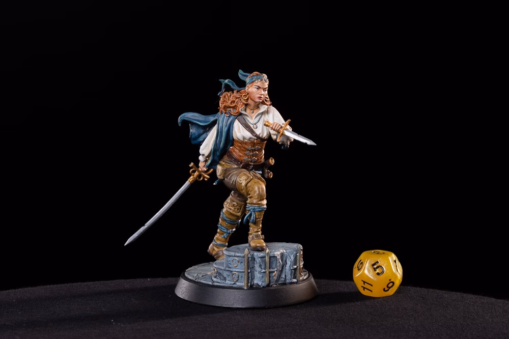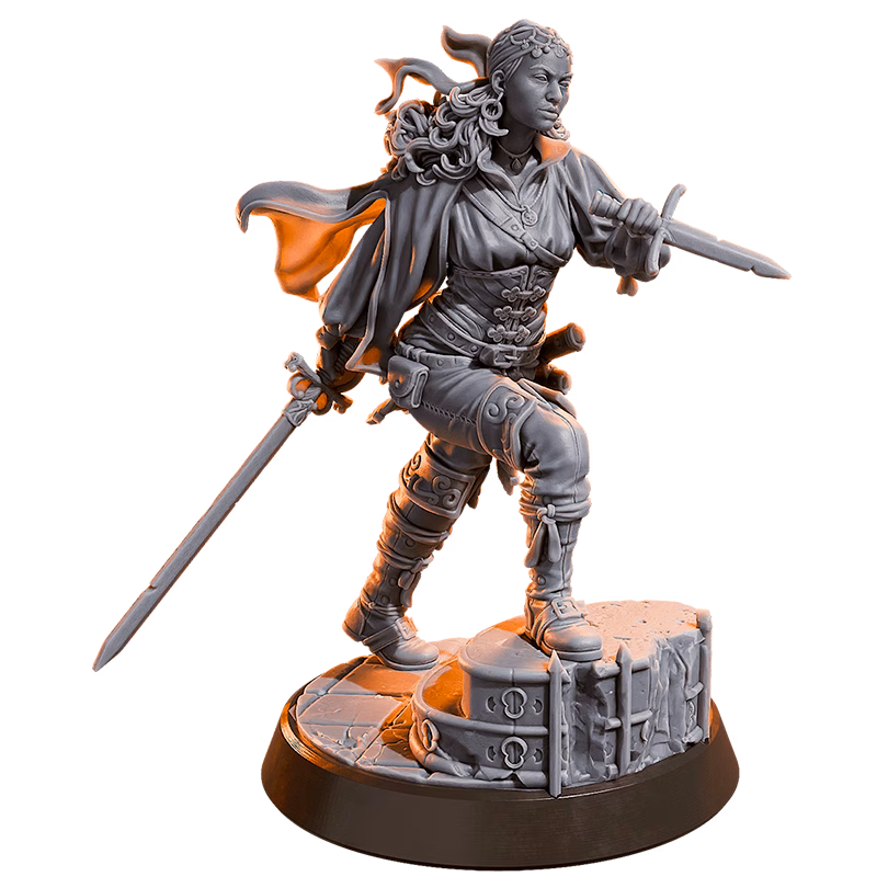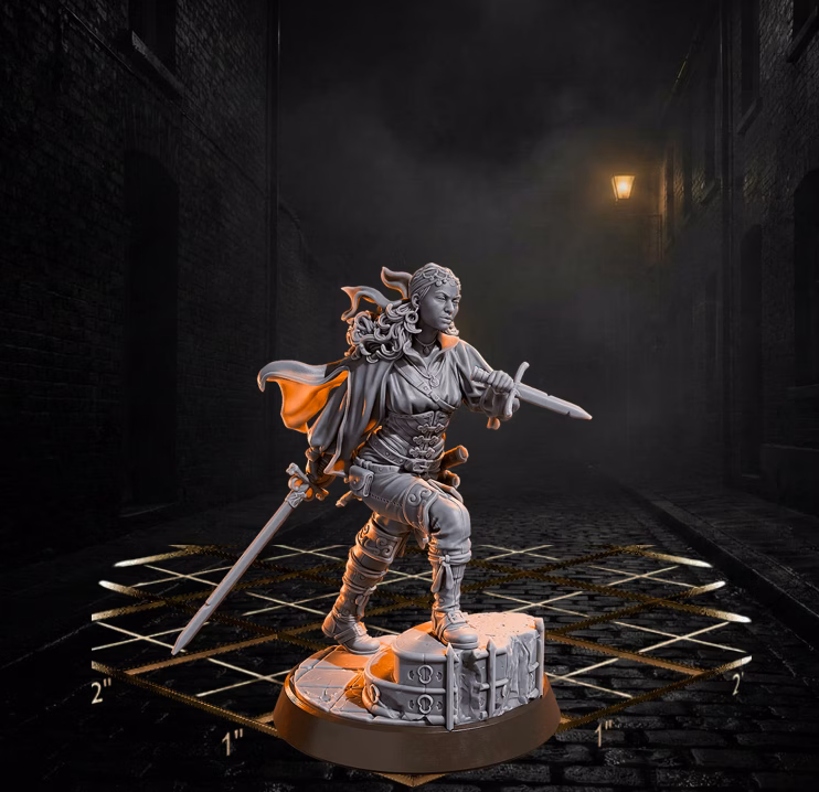 Complete your urban adventure party with Elara, the Street Duelist. This masterfully sculpted miniature captures a rogue or fighter in a moment of focused, lethal movement, perfectly suited for the fog-filled alleys and cobblestone streets of your campaign’s major cities.