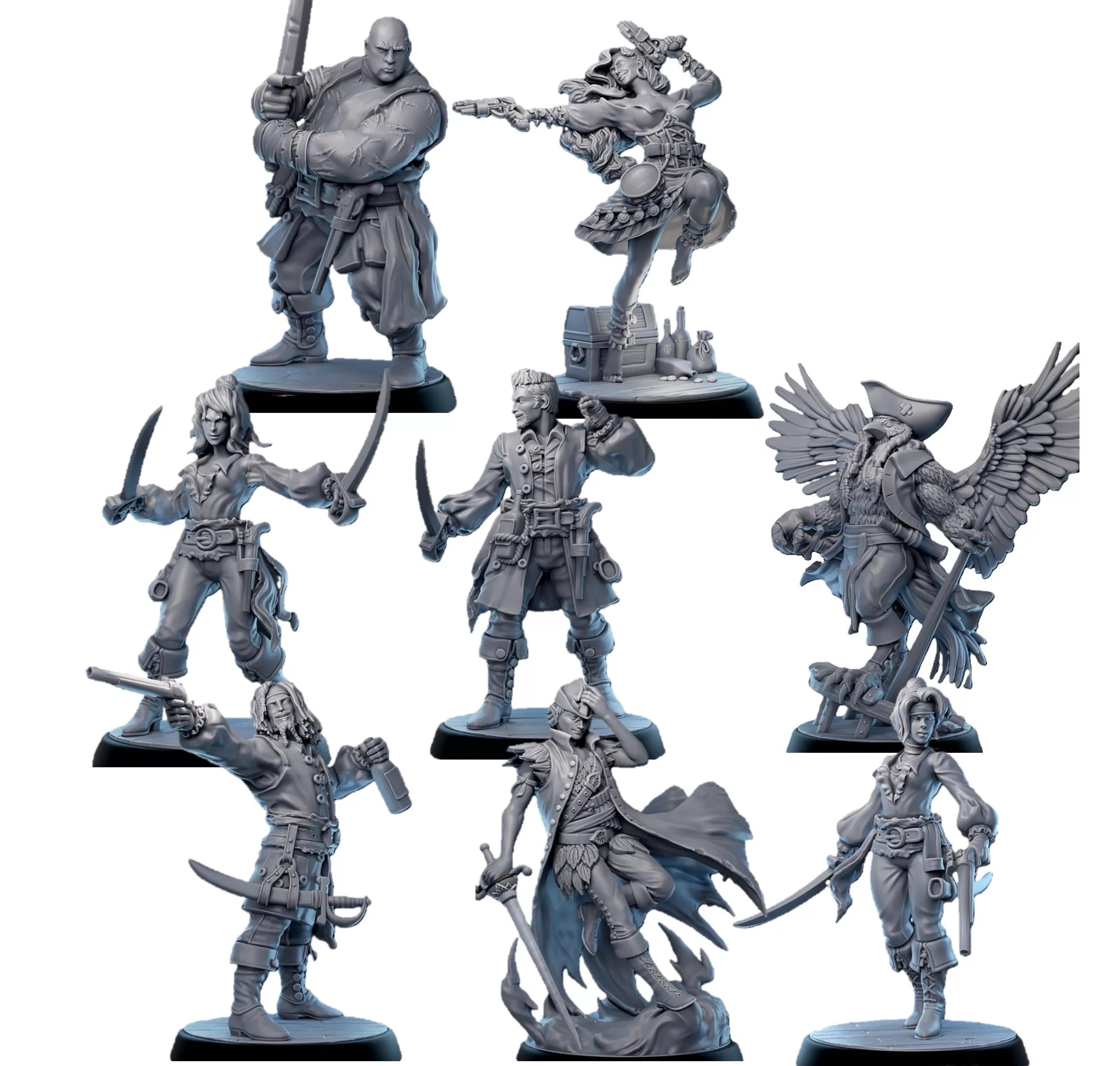Unleash the spirit of adventure with the The Swashbuckling Crew Set! This meticulously sculpted collection features a diverse crew of buccaneers, from the imposing brute to the agile duelist and the enigmatic avian captain. Each figure is brimming with personality and intricate detail, ready to command the high seas or navigate treacherous taverns. Perfect for your next nautical DnD, Pathfinder, or any TTRPG campaign, these minis will inspire tales of daring raids, hidden treasures, and fierce naval battles, bringing the thrill of a pirate’s life directly to your tabletop.