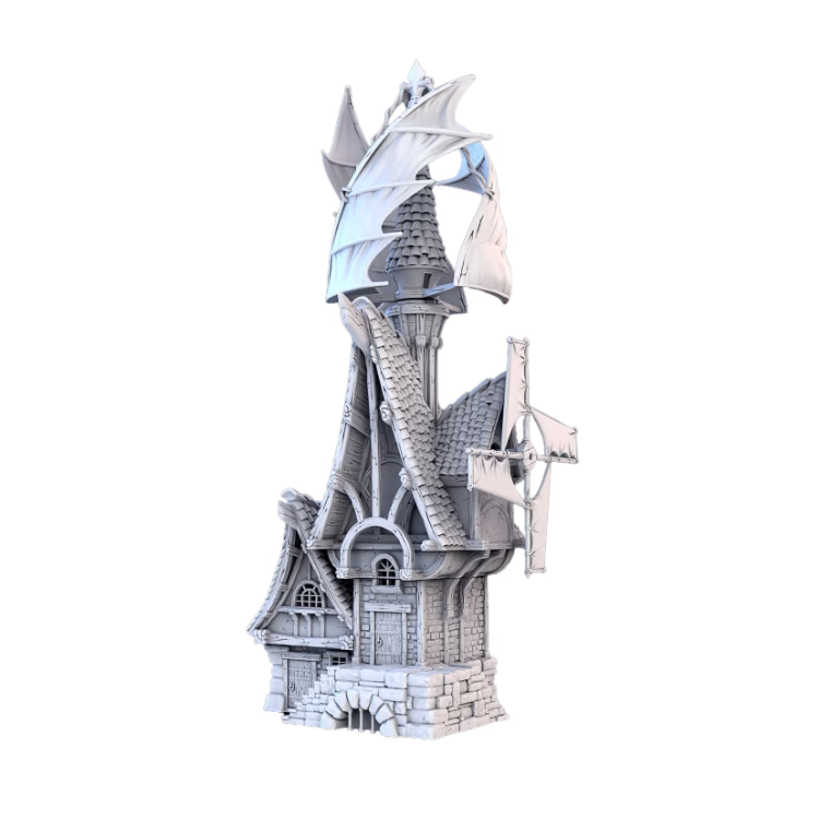 Stand out on the table with this unique Sail-Wing Windmill. Moving away from traditional wooden blades, this structure uses canvas sails, suggesting a coastal or high-altitude setting where every breeze counts.