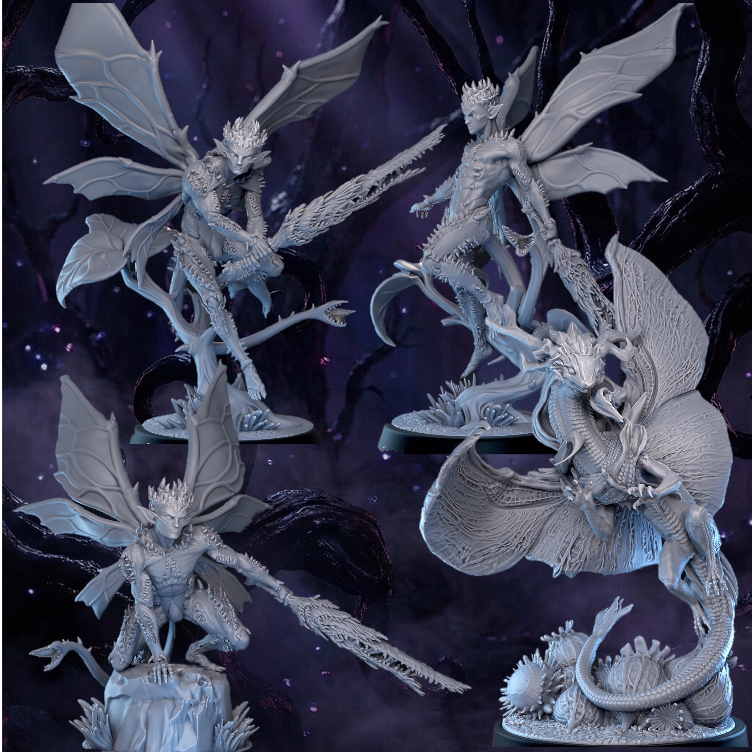 Fluttering bundles of teeth and sinew, the Osseous Knights serve as the serrated edge of the Sovereign’s will. Accompanied by the serpentine Bambelin, these blighted fey hunt for living flesh and warm, gushing blood within the sun-starved thickets of Evermere. They are the carnal impulse of the forest made manifest, born from a ravaging desire to rip, slice, and tear.