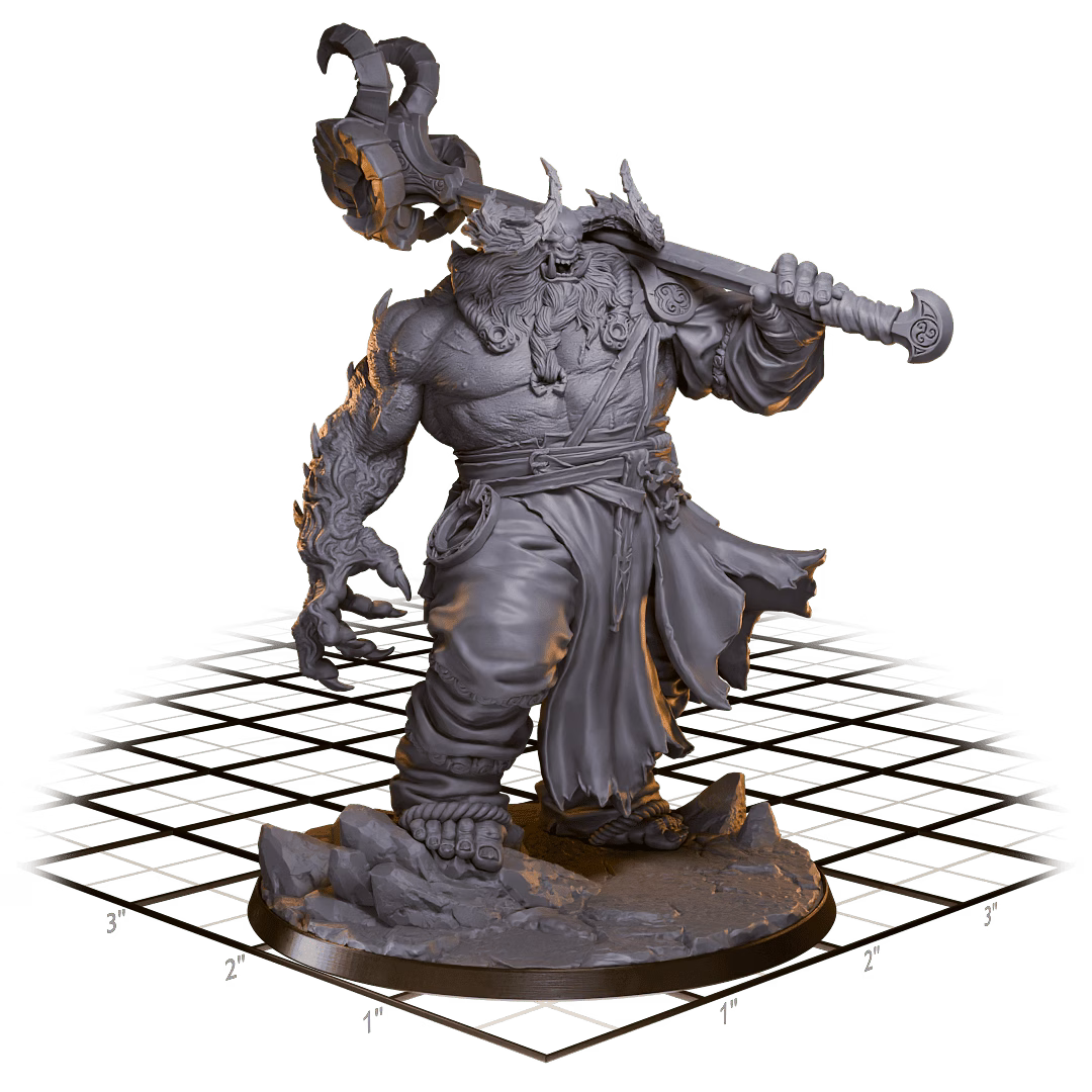 Inspired by the Fomorian kings of myth, this model captures the raw power and warped majesty of a giant king. Unlike the standard demonic Balor, this figure represents the high-ranking Fomorian giant, making it a unique addition to any encounter involving giants or ancient, cursed lineages.